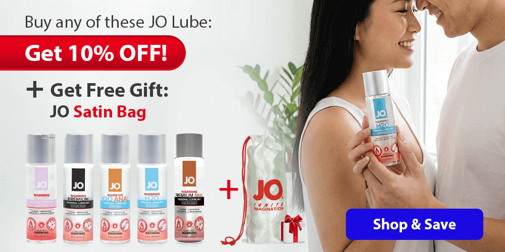 Feel the heat with 10% OFF JO warming lubes and a FREE satin bag for shared Valentine’s adventures. Choose the classic water-based H2O Lube that suits everyone, or go for Premium Silicone for a long-lasting glide. Try Anal H2O or Anal Premium Silicone for back-door fun, and for the closest-to-natural feel choose Agape.