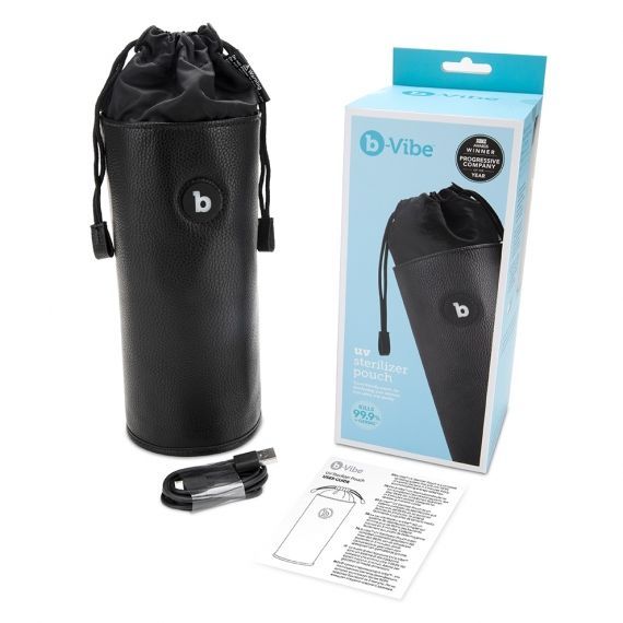 Kill 99.9% of harmful bacteria with the b-Vibe UV Sterilizer Pouch — A travel friendly bag for sanitizing sex toys and keeping them germ-free.