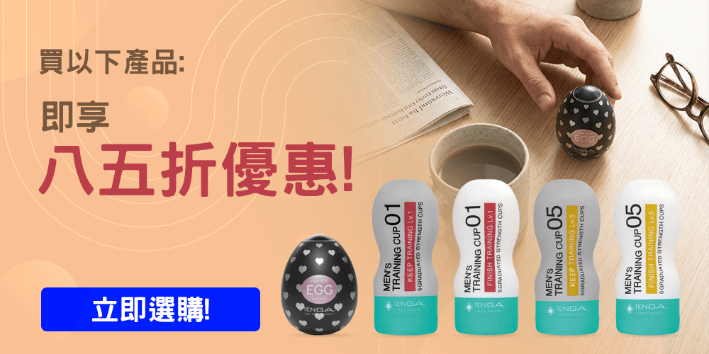 TENGA 情人节特选玩具八五折!试试具主题设计的“Egg Lovers”,为节日增添趣味;或探索“Healthcare 系列”— Keep Training(持续训练) 01 Soft / 05 Hard、Finish Training(完成训练) 01 Hard / 05 Soft,找到最合心意的刺激感。