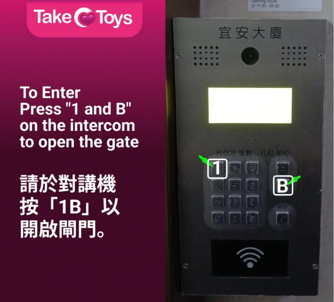 从湾仔港铁站A1出口直行即可到达本店,您会在本店所在的大楼上看到巨大的 TakeToys 横幅,入口位于 Café Hennessy 两个区域之间。请于对讲机按“1”及“B”以开启闸门。我们位于一楼。欢迎光临!
