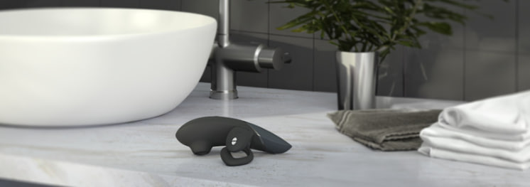 We-Vibe Sync O – 一款小巧、有彈性的情侶共用震動環。設計直覺、線條俐落,能在雙方互動時提供同步的快感,同時可調整佩戴鬆緊。